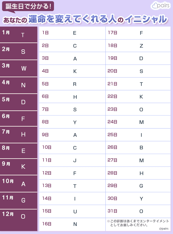 あなたの生年月日から、あなたの「運命を変えてくれる人のイニシャル」を診断する画像が面白いと評判です。