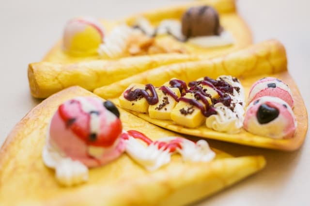 作り立ての人気クレープをぜひ、その場で味わってみてください。