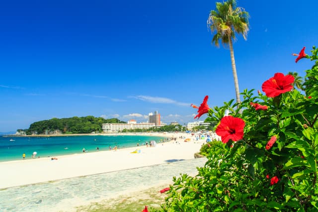 和歌山といえば海、海といえば「白良浜海水浴場」。延長620mの遠浅の浜に、90%の珪酸を含む石英砂は真っ白でサラサラの砂です。その美しい砂浜が広がる、和歌山県自慢の海水浴場です。全国から観光客の男女が押し寄せる、大人気の出会いスポットとなっています。夏場の浜辺にはカラフルなパラソルが咲き乱れ、トロピカルムードがあふれます。冬の期間も、星座や天使のゲートなど光のオブジェが幻想的なイルミネーションで彩られる「白砂のプロムナード」が開催されているので、年中新しい出会いを演出してくれる絶好のスポットとなっています。