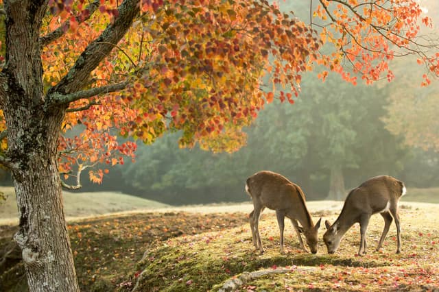 奈良県は古い歴史をもち、飛鳥時代や奈良時代には日本の都が置かれていました。その当時に建立された法隆寺・東大寺などの歴史ある寺院がいくつも残っています。斑鳩町の法隆寺は、世界最古の木造建築物として貴重ですし、奈良市の東大寺には「奈良の大仏」として知られる盧舎那仏があって、国内外から多くの観光客を集めています。各寺院の仏像は今も人々の信仰の対象であり、美術品としても大変に価値のあるものです。人間に慣れている奈良公園の鹿は、外国の人にも大人気です。