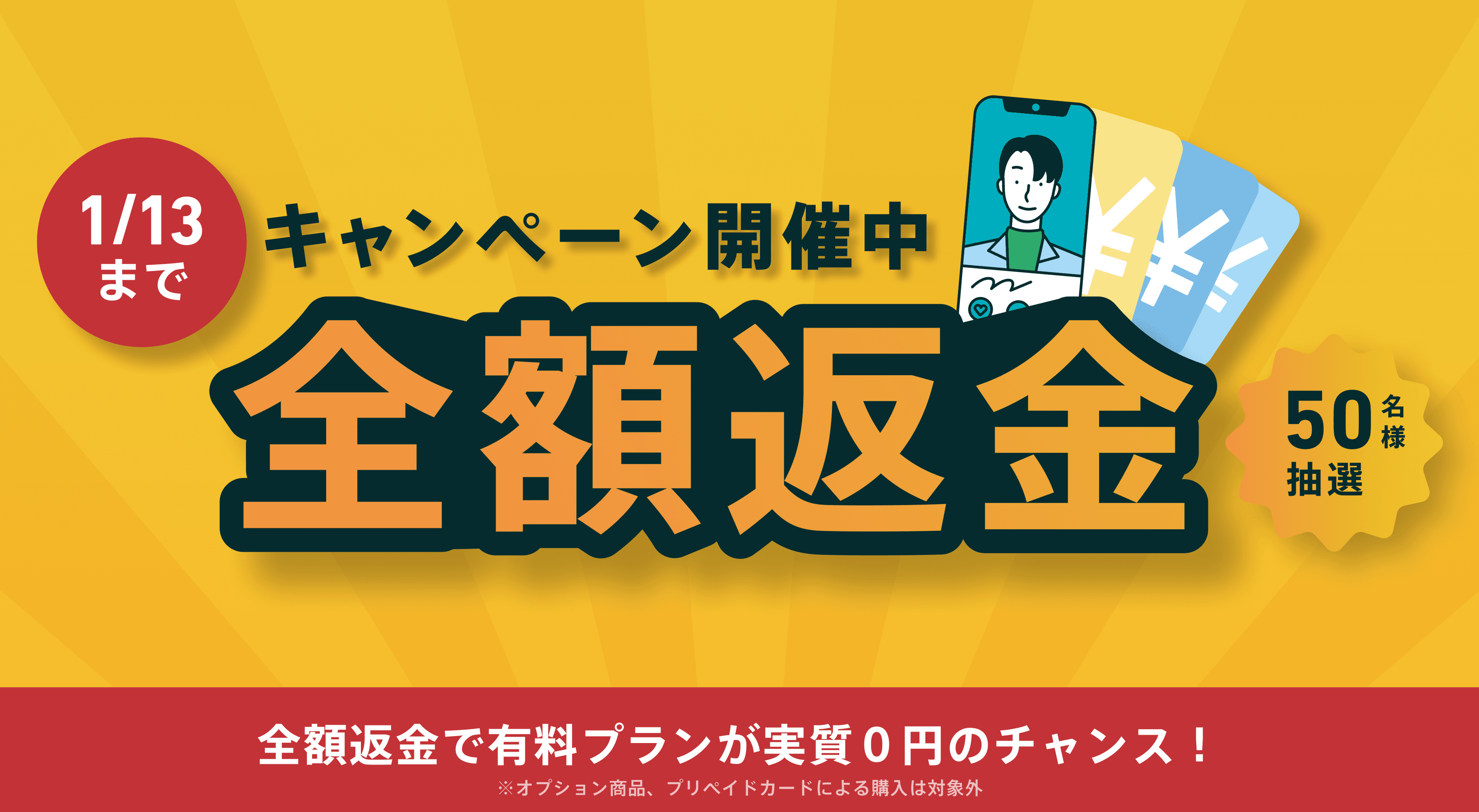 全額返金の大チャンス! 期間限定キャンペーン開催!