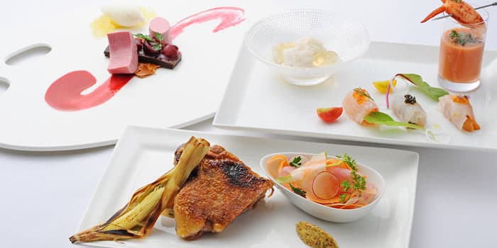 四季折々の旬の食材と厳選されたフランス直送の高級食材が持つ、味・色・香り・食感等を活かすだけでなく、モダンアートを彷彿させる美しい盛り付けなど、色彩豊かな五感に響く一皿。