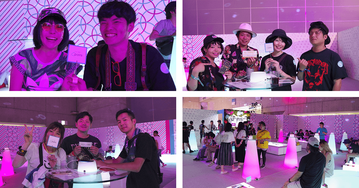 「好きなバンドなど、音楽の好みが合うと初対面の人ともすぐに盛り上がるので、音楽フェスの場でPairsのラウンジがあるのは良いことだと思いました。」
