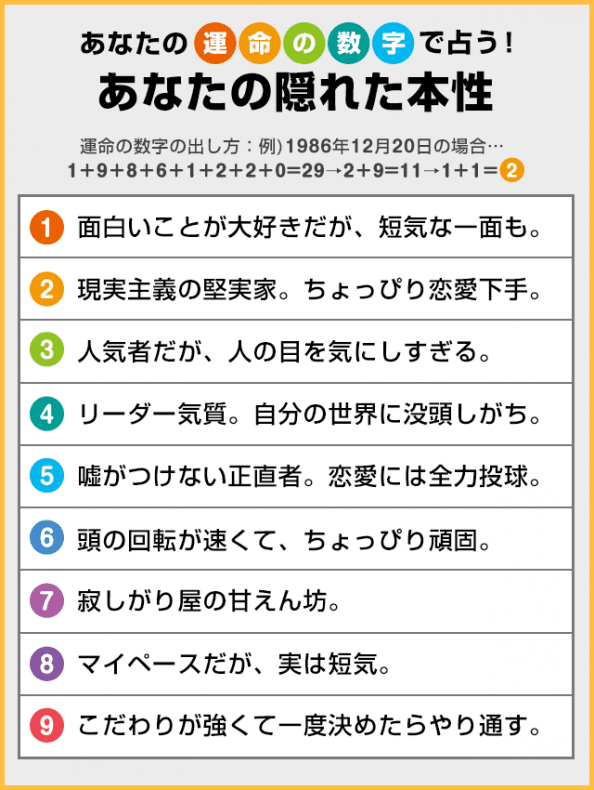 生年月日の数字をすべて足して1ケタにするだけで、あなたの「隠れた本性」がわかります!