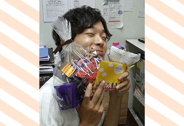 職場でお祝いしてもらったときの写真を使用。妻からは、人からお祝いしてもらえる人ということで、安心感があったみたいです。