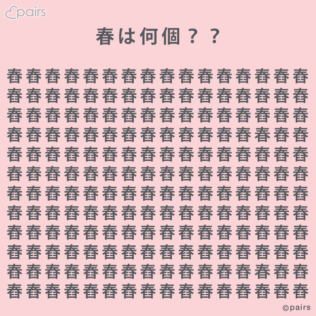 たくさん並んだ文字の中から、「春」がいくつあるかがわかると恋愛の春が訪れるかも?!
