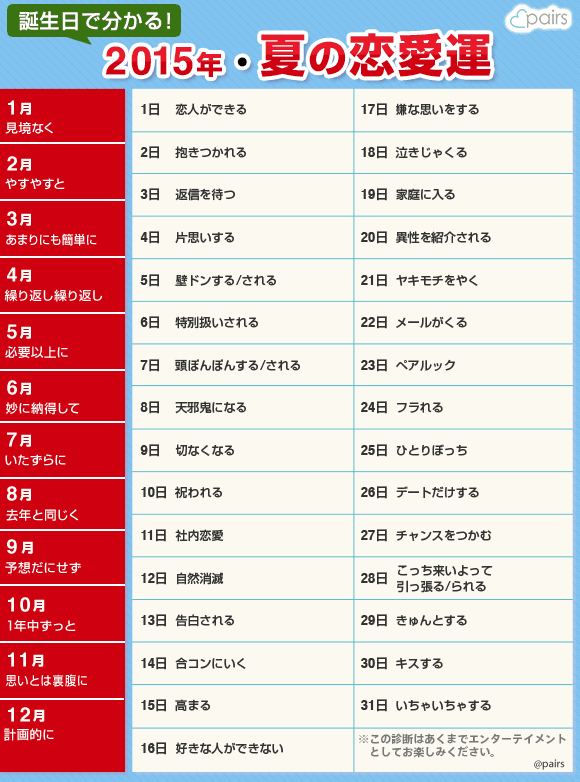 今回は「誕生日でわかる、2015年の夏の恋愛運」をご紹介します! あなたの結果は…?