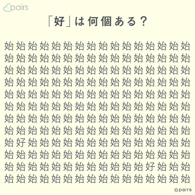 たくさん並んだ文字の中から、「好」がいくつあるかがわかると幸せな恋愛ができるかも。