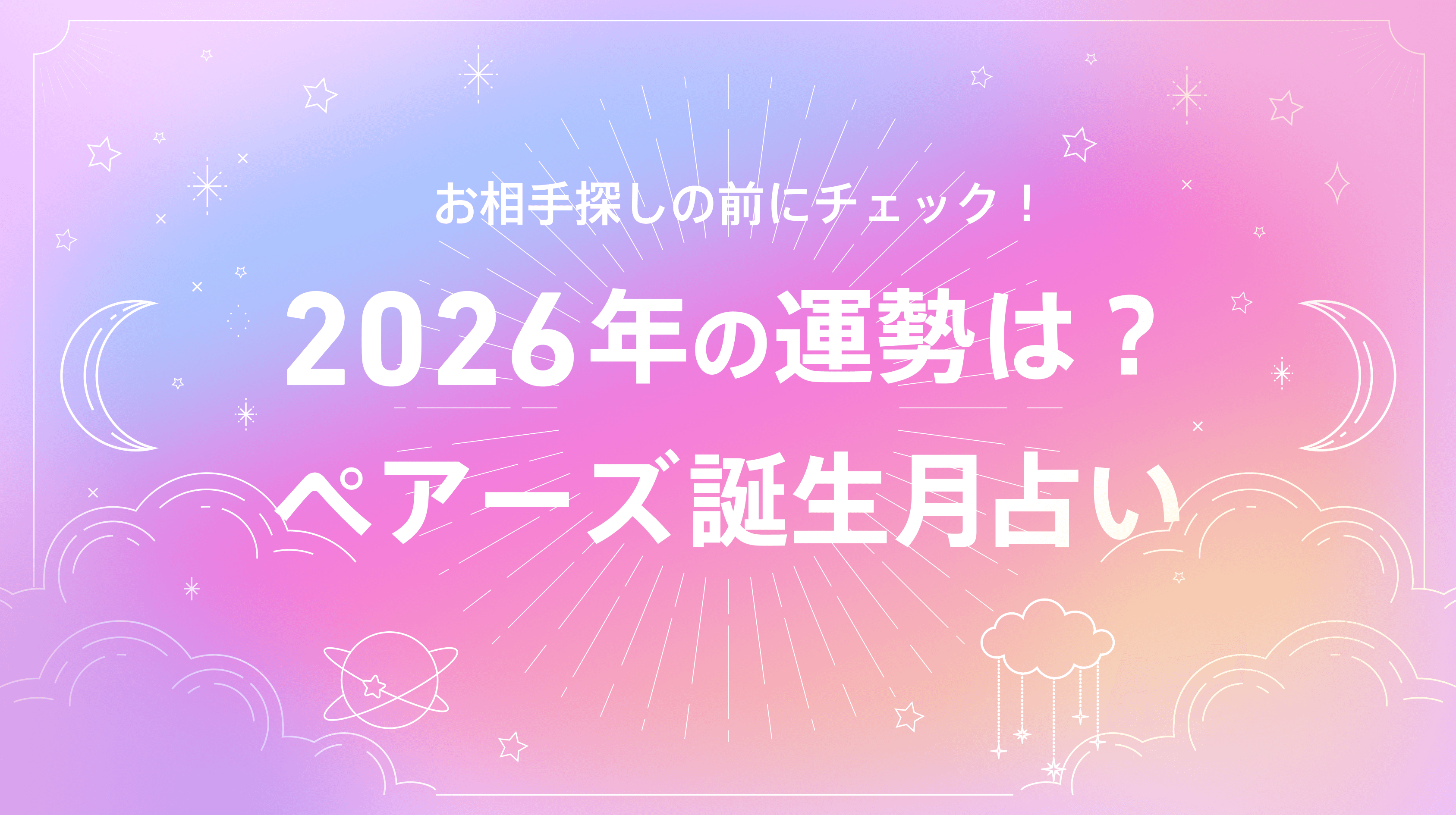 お誘いを受けることが多くなるでしょう。 2026年の恋を引き寄せるカギは、「とりあえずトライしてみよう!」のマインド。「自分のタイプとは違う」「○歳までに結婚したいから」などと自分をしばりつけてしまうと、せっかくのチャンスを逃してしまう可能性も。深く考えずに目の前の出会いを楽しみましょう。