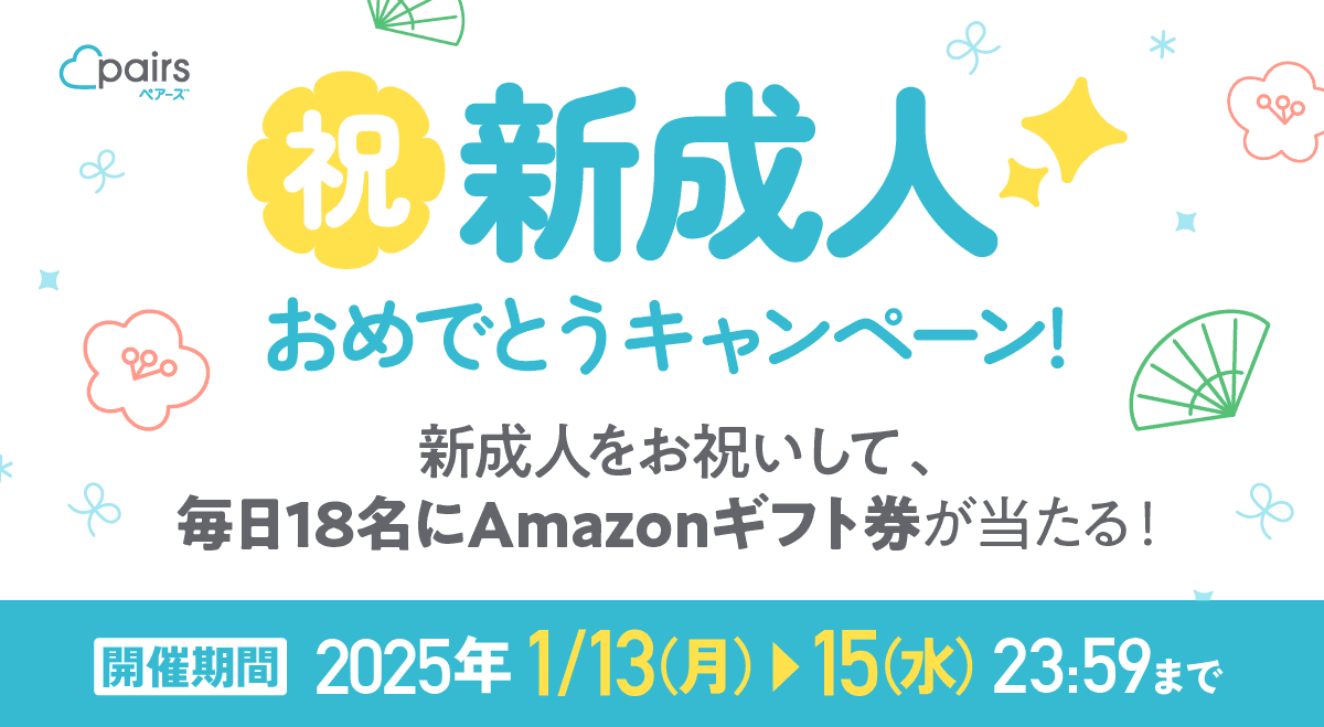※本キャンペーンは株式会社エウレカによる提供です。本キャンペーンについてのお問い合わせはAmazonではお受けしておりません。株式会社エウレカキャンペーン事務局(info@pairs.lv)までお願いいたします。