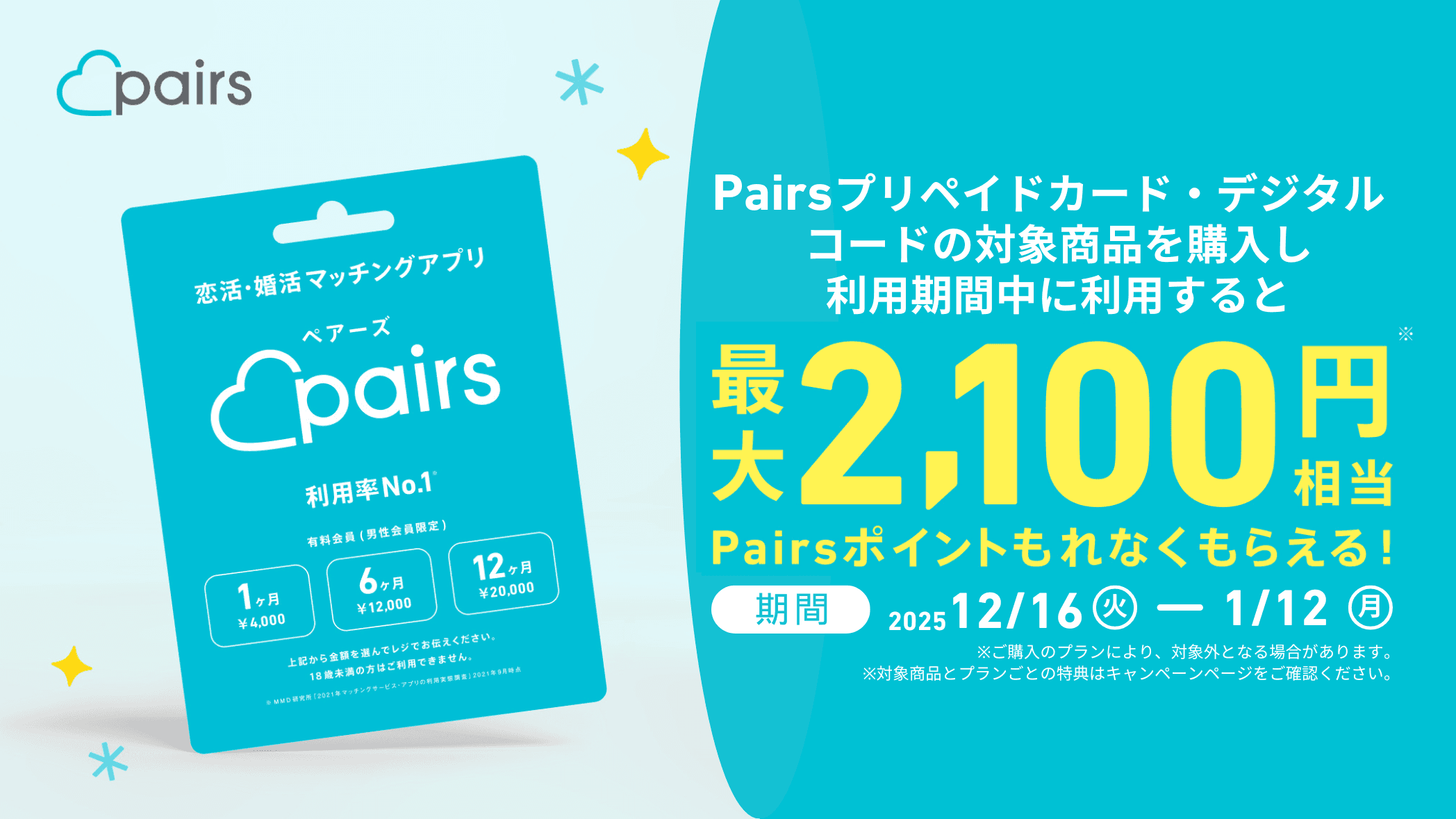 2025年12月16日(火)より「ペアーズポイントプレゼントキャンペーン!」を開催いたします。