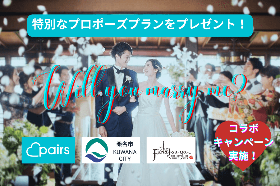 ペアーズと三重県桑名市、THE FUNATSUYAのコラボイベントとしてペアーズカップル応援企画「Will you marry me?」 キャンペーンを開催いたします。