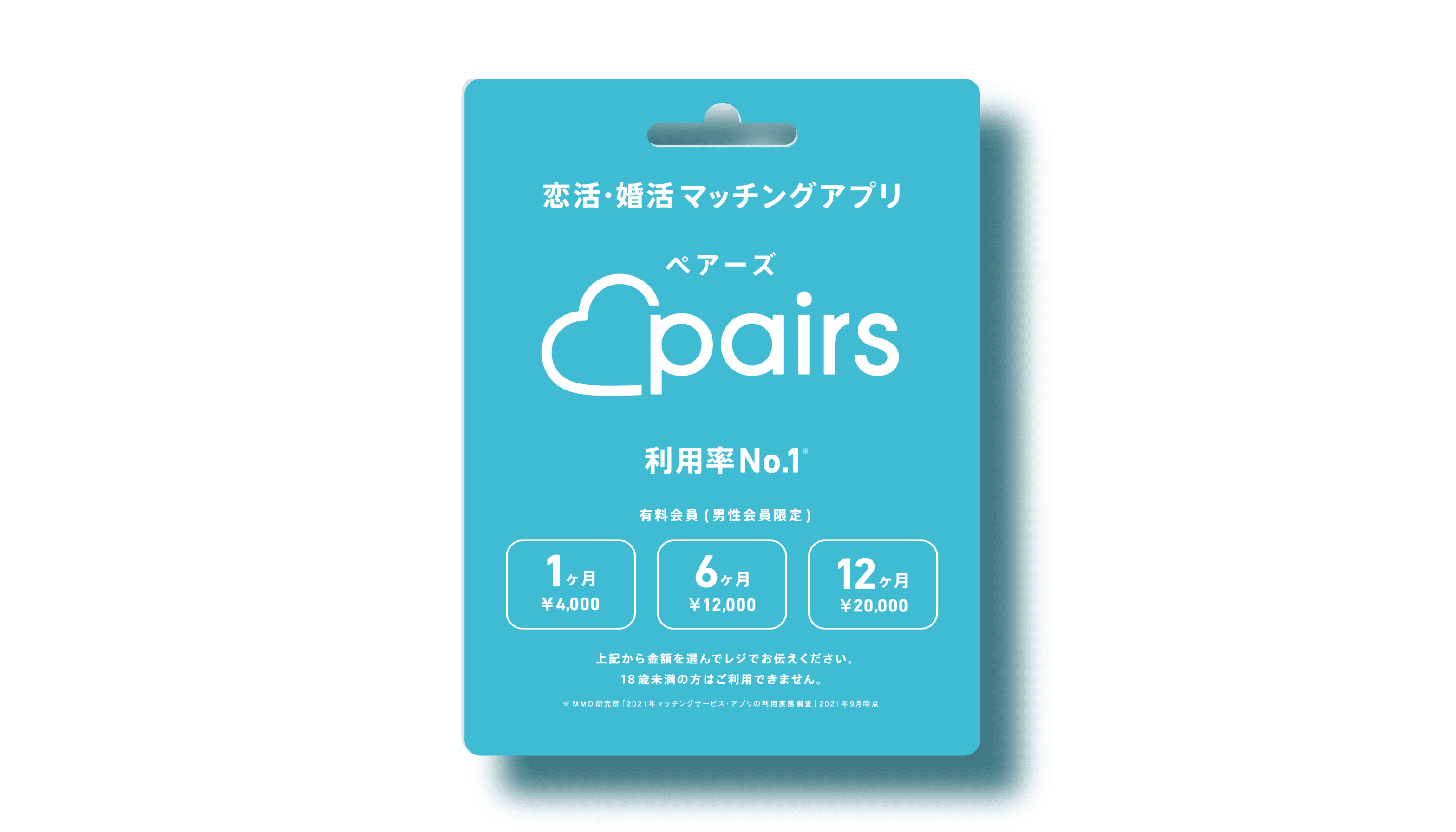 2021年11月22日(月)より、マッチングアプリで初となるPairsプリペイドカード(POSAカード)が発売されています。