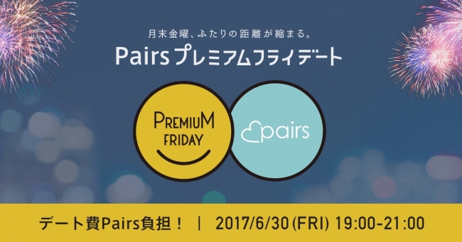 2017年6月30日のプレミアムフライデーにあわせて、Pairs会員向けの特別企画「Pairsプレミアムフライデート」を開催いたします。