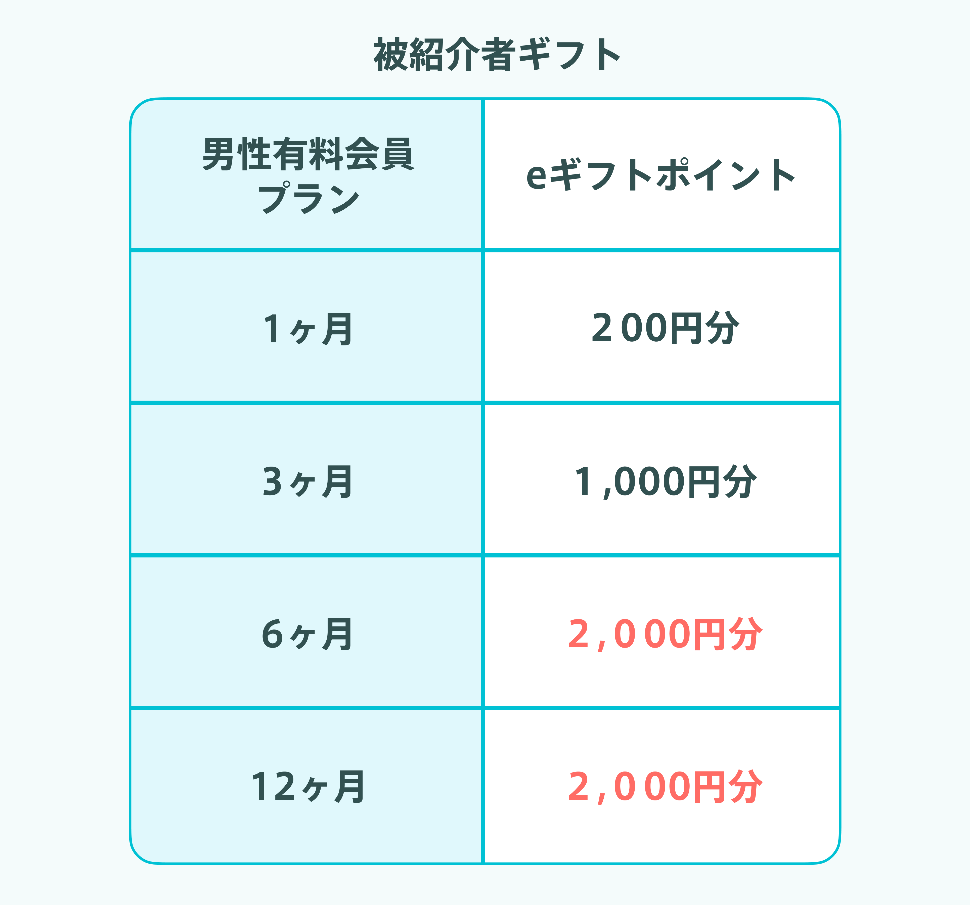 ・紹介による初めての男性有料会員プラン(1.3.6.12か月プラン)の購入がギフトプレゼントの対象です。