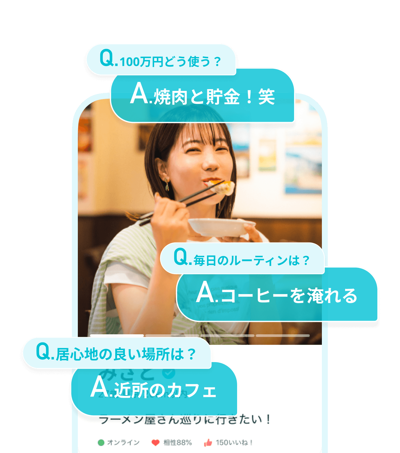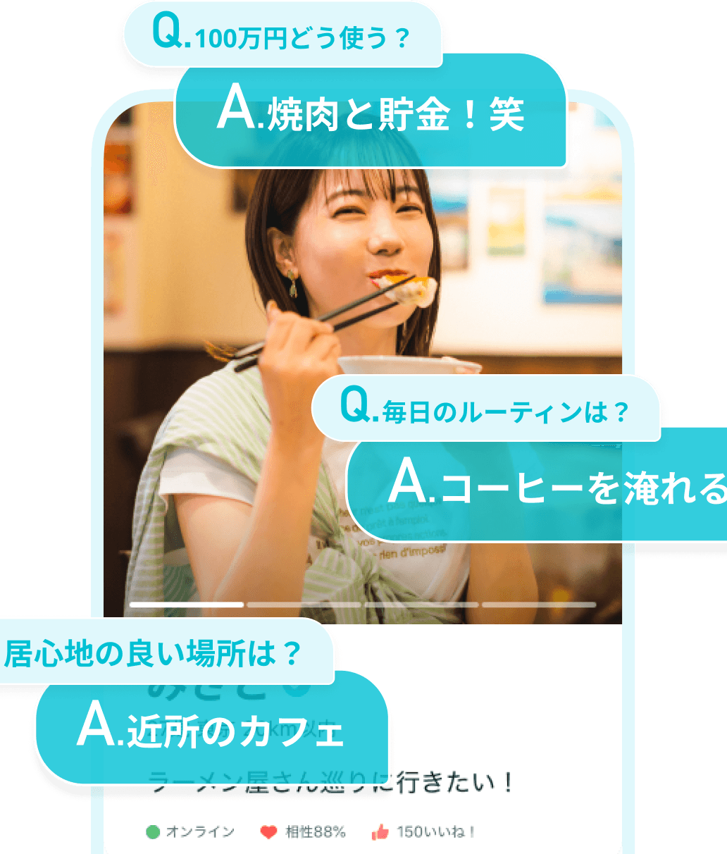 質問の回答から直感的に人柄を感じてマッチング